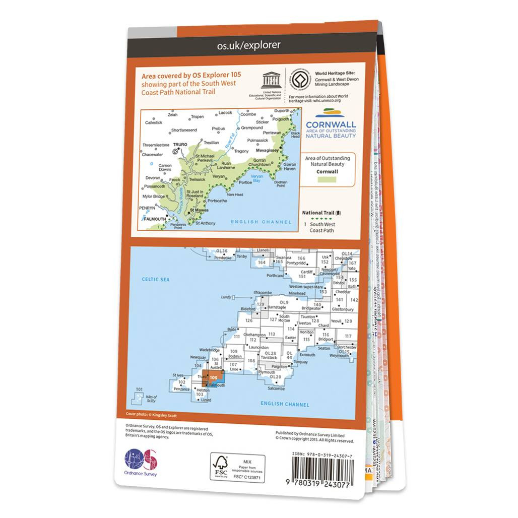 OS Map Explorer 105 – Falmouth & Mevagissey