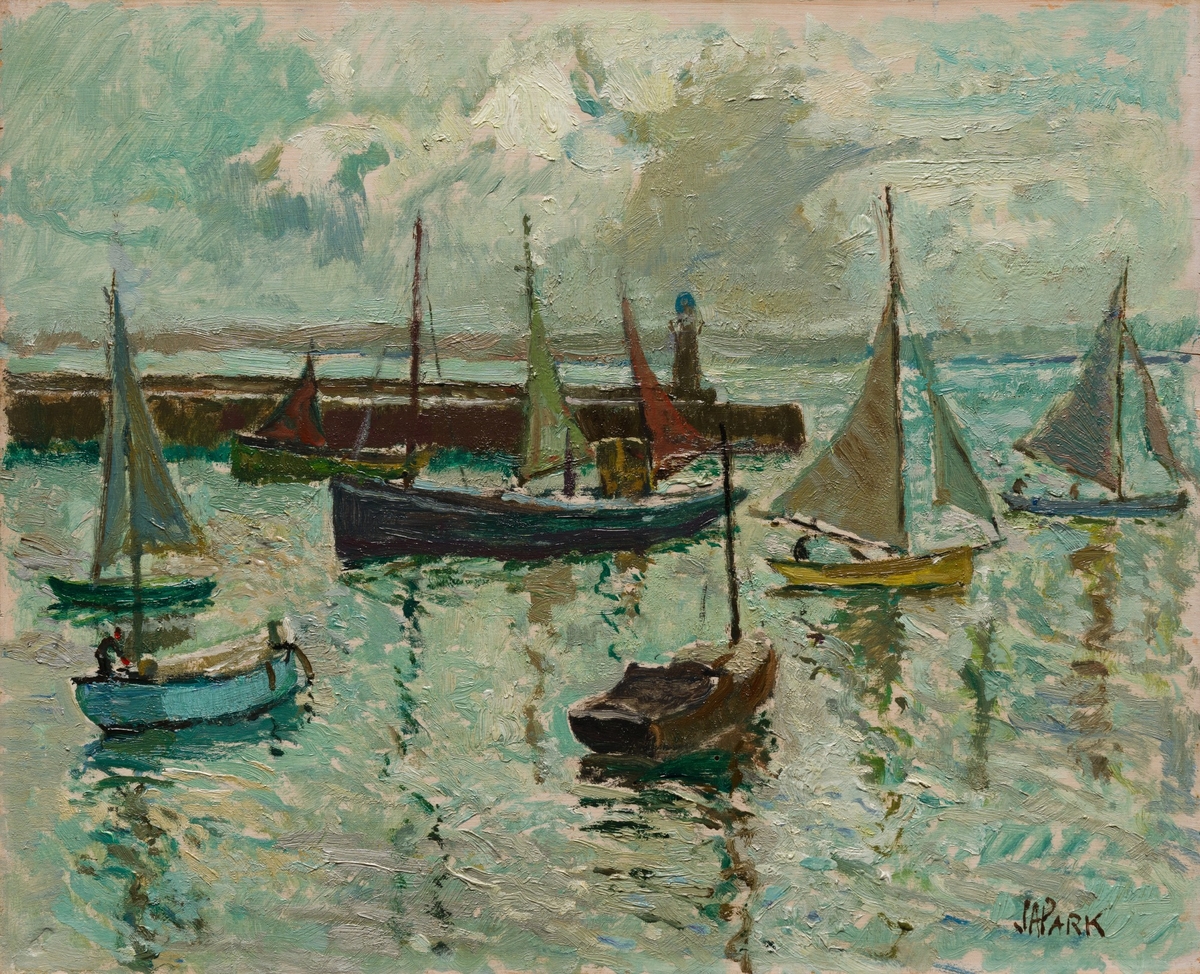 A painter, especially in oil of seascapes and harbour scenes in Cornwall, born in Preston, Lancashire. He moved to St Ives in 1899 and studied there under the seascape specialist Julius Olsson and in Paris at Atelier Colarossi. Park spent most of his life in St Ives, but left in the early 1950s to live for a short time in Brixham, Devon, ultimately moving back to Preston, where he died. By this time he had established a solid reputation as a painter of fishing boats and West Country scenes, such as the Tate Gallery’s Snow Falls on Exmoor. Exhibited RA 1905–49, Paris Salon, where he won a bronze medal in 1924, and St Ives Society of Artists; one-man shows included Ruskin Gallery, Birmingham, and Penwith Gallery, St Ives, 1983.